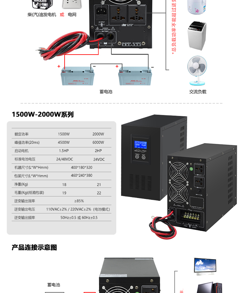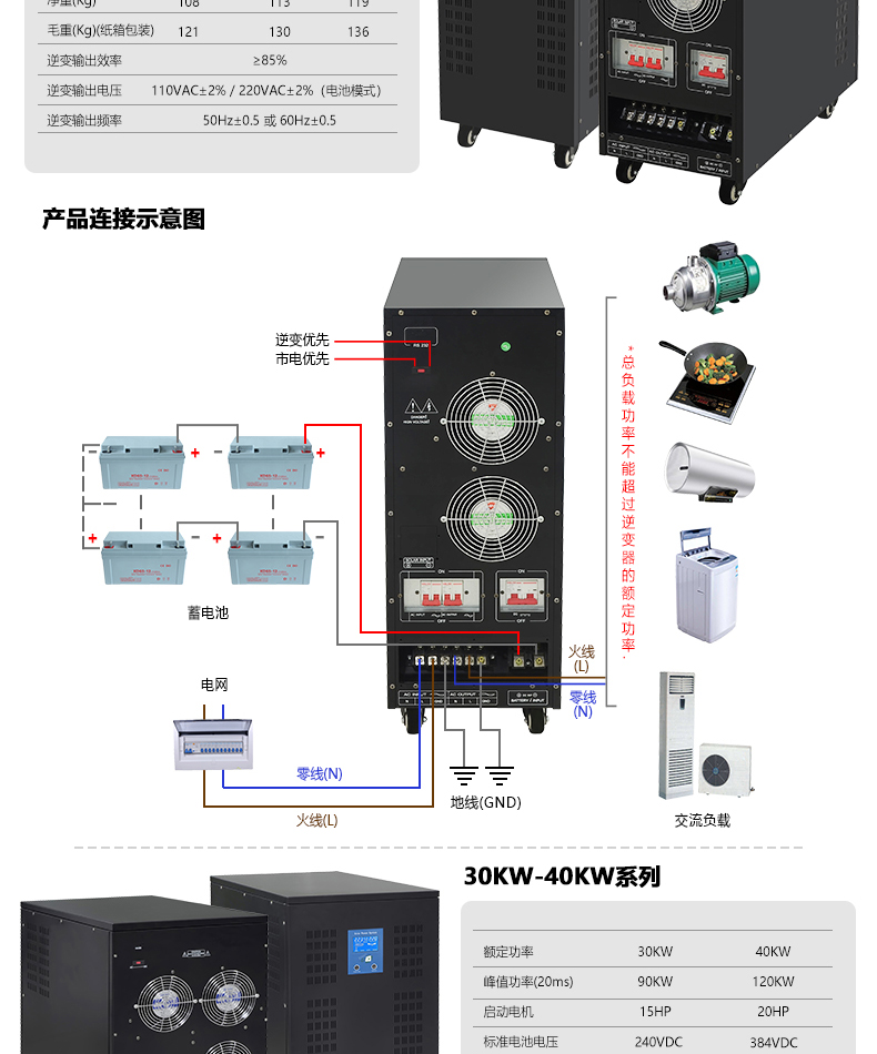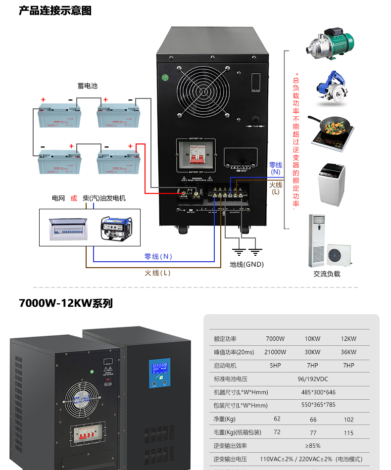 大功率工频逆变器24v48v工农传输太阳能逆变电源智能储能逆变器